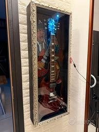 Teca artigianale dedicata ad angus young ac/dc con led direzionale, chiusura magnetica vetro 4 millimetri