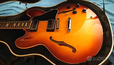 GIBSON ES 335 Custom Shop modello Signature Larry Carlton anno 2005, acquistata usata negli USA per collezione, riposta da diversi anni nella custodia professionale SKB abs-alluminio in quanto non disponibile la sua originale. Strumento originale (fornita mail Gibson Europa ) in condizioni estetiche eccellenti come da foto, solo una lieve scheggiatura visibile nel bordo posteriore della paletta, raramente reperibile a questo prezzo.