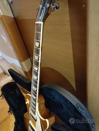 Chitarra elettrica Les Paul Classic della Gibson Modern Collection, prodotta negli USA Finitura lucida alla nitrocellulosa Honey Burst Costruzione set-neck con 24,75" di lunghezza della scala (628 mm) Corpo in mogano con 9 fori in rilievo Top in acero massiccio Manico incollato in mogano Tastiera in palissandro da 22 tasti con intarsi a trapezio "Profilo del manico "Slim Taper Un pickup Gibson Burstbucker 61R Zebra in posizione manico Un pickup Gibson Burstbucker 61T Zebra in posizione ponte Commutazione a 3 vie con controlli di volume e tono separati per ogni pickup Split Coil per ogni humbucker tramite interruttori push/pull nei controlli di volume Circuito Out-of-Phase tramite interruttore push/pull nella manopola del tono Pure Bypass tramite interruttore push/pull nella manopola del tono Gibson ABR-1 Tune-O-Matic ponte Cordiera in alluminio Gibson Stopbar Accordatori Grover Rotomatic con alette Kidney Incluso Gibson USA guitar case Anno 2022 Chitarra come nuova, usata poco e solo in casa. Vendo per esubero