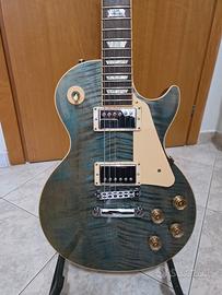 LEGGI BENE PRIMA DI CONTATTARMI. Vendo Chitarra elettrica Gibson Les Paul traditional 2014 colore ocean blue per inutilizzo. Made in USA. La chitarra è stata usata, non moltissimo, ma i tasti sono a posto. Completa di custodia originale, certificati e tutto il resto. Ha un segno sul retro visibile in foto, dovuto al gommino del reggi chitarra che si era staccato e ha lasciato il segno. Ha un altro segno sul manico della chitarra dovuto ad un adesivo che avevo staccato, si può vedere solo in controluce, non so se la foto rende bene. Ma naturalmente mando e video e foto solo a chi è realmente interessato con dettagli. Preferisco consegna a mano, ma assolutamente possibile la spedizione della chitarra. Vendo per monetizzare, non sono assolutamente interessato a condiderare a Stratocaster, Telecaster, o qualsiasi altro tipo di chitarra, e nemmeno a offerte non congrue, male che va rimane qui, non sussiste problema. Name:Gibson Les Paul Traditional 2014 BODY:mahogany Type: Solid Body TOP:maple NECK:mahogany Profile:’50s Nut Width:1.695” ( 1 11/16” ) / 43mm FINGERBOARD:rosewood Bridge Pickup:1959 Tribute Humbucker Neck Pickup:1959 Tribute Humbucker Potentiometers Vol:500K Non-Linear Potentiometers Tone:500K Non-Linear Tuners:‘Modern-style kluson’ TonePros 16:1 Bridge:Nashville T-O-M Tailpiece:Stop Bar Color:Chrome Finish Type:GLOSS