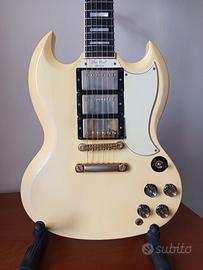 Vendo splendida chitarra Gibson SG Les Paul '61 Custom Reissue del 1999 perfettamente funzionante con custodia originale. Per veri intenditori e collezionisti. è sprovvista di cartellini, sono passati quasi 30 anni. Disponibile per qualsiasi prova a chi è veramente interessato. Chitarra che non ha bisogno di presentazioni dal suono unico ed iconico. No scambi. Non spedisco. Solo vendita. Consegna a amano. Per qualsiasi informazione non esitate a contattarmi. PREZZO 4.200 EURO POCO TRATTABILI..