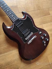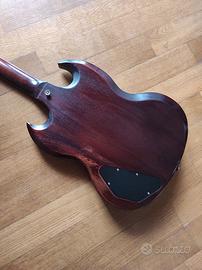 Gibson SG Special Faded Worn Brown del 2005, vendo per esubero e realizzo. Numero seriale: 030050659 Made in U.S.A. In ottime condizioni salvo il retro un poco scolorito per l'uso, come si può vedere in foto. Upgradata con pickup Seymour Duncan Sh-1B '59 al ponte (costo circa € 100) Corde nuove, usate solo un paio di volte: Elixir Poliweb 09-42 Custodia rigida GEWA in regalo (valutazione usato: € 50) Non scambio. Marca: Gibson Modello: SG Special Faded Colore: Worn Brown Finitura: Satinata Corpo: Mogano Manico: Mogano Profilo del manico: Slim C Tastiera: Palissandro Intarsi della tastiera: Punti bianchi Larghezza al capotasto: 1-11/16" Lunghezza della scala: 24,75" Tasti: 22 Meccaniche: Gibson Deluxe Pickup al ponte: Seymour Duncan Sh-1B '59 (che sostituisce il 490T originale) Pickup al manico: 490R Alnico Humbucker Controlli: Selettore pickup a 3 vie, 2 volume, 2 tono Numero di corde: 6 Custodia/Gigbag: Custodia rigida GEWA in regalo