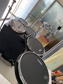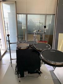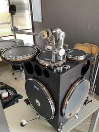 Gig Pig batteria portatile. Modello con doppia cassa e 4 toms (6-8-10-12) colore nero. 2 aste con possibilità di aggiunta di una terza. Non presenti i piatti perché usavo Sabian professionali. Ma consegno HH da 12” e crash da 12” originali Gig Pig Pelli nuove Evans, usata molto poco (4live) da rifare il filetto di una vite, ma utilizzo non compromesso, è una vite di sostegno solo per ancoraggio a terra Valore da sito del produttore è 1300 euro senza tom da 12”. vendo a 650€ non spedisco.