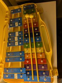 Vendo glockenspiel/xilofono marca GEWA, utilizzato durante gli anni delle scuole medie. Lo strumento è in buone condizioni generali, perfettamente funzionante e ben tenuto. Presenta solo piccolissimi residui di colla dello scotch, praticamente invisibili, situati sia su alcune piastre della fila blu sia nella parte interna gialla. Per il resto è integro e pronto all’uso, ideale per studenti o per chi vuole iniziare a suonare. prezzo da nuovo= 35 prezzo da usato= 18