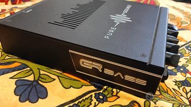 La più piccola testata da 350W in circolazione, vi garantisce tutta la qualità sonora della sorella più grande, la GR One e una grande potenza in spazio e peso ridottissimi. Perfetta cme testata di backup o nei Club, non teme anche grandi palchi se accompagnata a casse di potenza e impedenza adeguata scelte nell'incredibile gamma GRBass Made in Italy. I filtri deep e bright aggiungono profondità e definizione all'equalizzatore, e l'uscita cuffie e l'aux-in integrati la rendono perfetta per studiare in casa o in tour. L'uscita D.I. di grande qualità ed estremamente silenziosa, la rende un prodotto perfetto per l'utilizzo dal vivo e in studio. Gr Mini: il Pure Sound GRBass nel palmo di una mano.