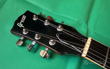 In vendita: chitarra modello Greco EG600S del 1976, stile Les Paul Standard, in condizioni discrete e perfettamente funzionante. Controlla le foto per maggiori dettagli su ammaccature e graffi. Si tratta di un primo modello di fascia alta, prodotto nell’iconica fabbrica Fujigen in Giappone, che si ispira chiaramente alle Les Paul Gibson della fine degli anni ’70.