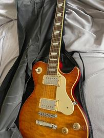 Vendo splendida chitarra elettrica Signature Greg Bennett (by Samick), modello Avion, ispirata alla classica Les Paul Standard. Si tratta di uno strumento di fabbricazione coreana, noto per una qualità costruttiva e una scelta dei legni nettamente superiore alle produzioni entry-level attuali. Una chitarra solida, affidabile e con un sustain sorprendente. Caratteristiche principali: Corpo: Stile Les Paul con uno spettacolare Top in Acero Quilted (marezzato) in finitura Amber Sunburst. Elettronica: Equipaggiata con 2 Pickup Humbucker Duncan Designed, potenti e versatili, perfetti dal Blues all'Hard Rock. Hardware: Ponte Tune-O-Matic con stop tailpiece (per un'intonazione perfetta) e meccaniche di precisione. Controlli: Configurazione classica a 4 potenziometri (2 volumi, 2 toni) e selettore a 3 vie. Manico e Tastiera: Tastiera in palissandro con eleganti segnatasti a trapezio; manico molto confortevole e veloce. Condizioni: Lo strumento è in ottime condizioni estetiche e funzionali, come visibile in foto. È stato tenuto con cura e non presenta difetti strutturali. Incluso nel prezzo: Custodia morbida imbottita (nuovissima). Perché sceglierla? È il compromesso ideale per chi cerca una Les Paul "seria" con un look ricercato e un suono professionale, senza dover investire le cifre di una Gibson. Ottima sia come primo strumento di qualità che come "muletto" affidabile per i live. Disponibile per qualsiasi prova. Consegna a mano o spedizione da concordare.