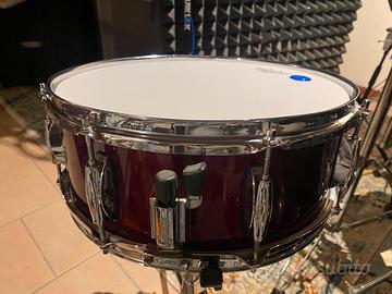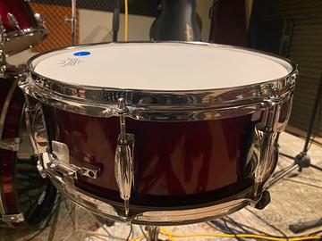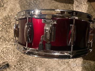 Vendo magnifico rullante serie catalina stage del 2001 fusto 6 strati in betulla/mogano 14x5,5” triple flanged hoops da 2,3 mm colore wine red. Si tratta della primissima serie fatta a Taiwan da Gretsch, silver square badge. Preferisco ritiro a mano