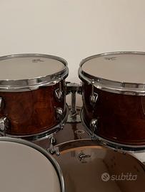 I fusti non hanno mai cambiato le pelli e le condizioni sono ottime, è composta di gran cassa, rullante, 2 tom e timpano.
