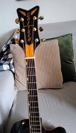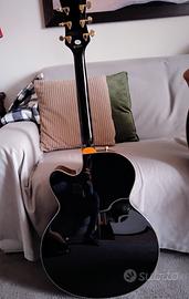 Bellissima chitarra Gretsch, modello come da titolo, di colore nero lucido e profili e fregi dorati con riflessi tendenti al bronzo. Si tratta di una chitarra con forma Jumbo a spalla mancante molto bella e elegante a vedersi. Ovviamente il suono è top sia suonata semplicemente in acustica che amplificata. La chitarra è in uno stato perfetto, non ha un graffio, in pratica è come nuova. È stata suonata pochissimo per poco tempo e per presenza in casa di ulteriori chitarre. E' un ottimo affare, considerando il costo da nuova.