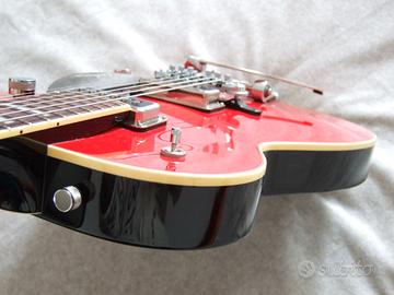 Riedizione 2008 in condizioni pari al nuovo. Realizzata nel 125° anniversario Gretsch questa Jet Firebird ha le specifiche del periodo tra 1957 e 1958 con body single cut nero e top rosso orientale (Oriental red), segnatasti humptop, doppio pickup Gretsch Tds DynaSonic, tremolo Bigsby, hardware cromato e syncrosonic Melita bridge per la perfetta intonazione delle ottave.