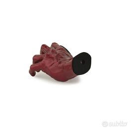 Gancio per chitarra made in Detroit montato a parete con forma della mano classica e maschile che colpisce in modo audace su qualsiasi parete ed è costruito per garantire la sicurezza e l'accessibilità dello strumento, aggiungendo sostanzialmente all'arredamento. È rivestito in vernice personalizzata e poi rivestito con un rivestimento superiore in uretano (trasparente) ad alta lucentezza per una maggiore durata e lucentezza. L'inserto imbottito protegge il collo della chitarra / basso / banjo o altro, mentre il feltro imbottito alla base protegge il muro da eventuali danni. Il gancio è facile da installare, con un supporto in acciaio da 20,3 mm incorporato e può essere ruotato per adattarsi alla maggior parte degli stili di paletta. L'hardware di montaggio standard è incluso. Il gancio è disponibile come modello per la mano sinistra. Colore rosso metallizzato