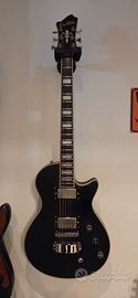 Vendo per cambio strumentazione. Chitarra in ottime condizioni. Setup e action da paura No scambi no permute Corpo: mogano Top: acero Manico incollato: mogano Tastiera: Resinator Inlays: blocchi madreperlati Binding del top bianco madreperlato Profilo del manico: D sottile Raggio della tastiera: 15" Lunghezza della scala: 648 mm (25,5") Larghezza del capotasto: 43 mm 22 tasti: Medium Jumbo Capotasto: Graphtech Black Tusq XL Pick-up: 2 humbucker Custom 60 AlNiCo-5 Selettore pick-up a 3 vie 2 controlli per il volume con circuito R/C 1 controllo per il tono con funzione push/pull per il coil split Meccaniche: Hagstrom Design Cordiera: Hagstrom Sustain Block Colore: nero opaco