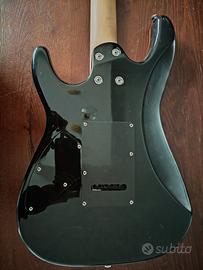 chitarra elettrica Harley Benton modificata (presumibilmente Harley Benton Fusion-III HSH EB FBLB).