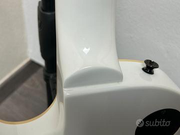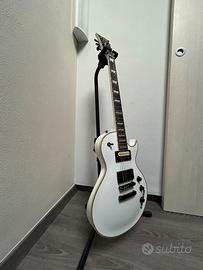 Vendo chitarra elettrica modello Les Paul Single cut, 24 tasti, doppio humbucker e ponte fisso. La chitarra in origine aveva due pickup attivi HBZ normalmente montati su queste chitarre ma il suono risultava un pò troppo impastato e feroce; ho proceduto alla sostituzione dei pickup originali con altri due Hum: al ponte un Horizon a quattro conduttori (eventualmente splittabile) ed al manico un PAF zebrato senza marca ma acquistato nuovo on-line. Sono presenti segni evidenti di uso ma non ci sono rotture che ne pregiudicano il funzionamento. Faccio notare due evidenti ammaccature, una sulla paletta piuttosto marcata ed una sul fondo della chitarra, dovuti ad una caduta accidentale dal reggi chitarra appeso al muro (purtroppo avevo fissato male tale supporto). E' stato rimosso il porta batteria dal retro della chitarra. Si prega di guardare attentamente le foto allegate. Alla chitarra ho inoltre sostituito le meccaniche con delle GOTOH (made in Japan) per una resa migliore dell'accordatura (le originali erano veramente pietose..). Consegna a mano. Non spedisco. Per ulteriori domande ed altre foto più dettagliate, non esitate a contattarmi. Trattasi di vendita tra privati secondo la formula del "Visto e Piaciuto" per cui non è accettata la restituzione.
