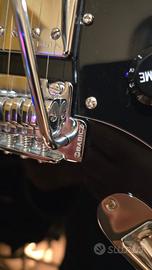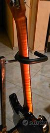 Harley Benton ST-Modern Plus HSS BK praticamente nuova, quasi nessun segno di usura. Nero lucido. Stratocaster dal valore di 400 euro, ma dalle qualità paragonabili alle migliori strato custom. Corpo: ontano americano Manico avvitato: acero fiammato canadese tostato Tastiera: palissandro Dot inlays e marcatori laterali fluorescenti Profili della tastiera ad angolo retto arrotondati Profilo del manico: D - spessore al 1° tasto: 20,5 mm/12° tasto: 22,5 mm Truss rod a doppia azione con rotella di regolazione Articolazione manico-corpo ergonomica Raggio compound della tastiera: 305 - 406 mm (12" - 16") Lunghezza della scala: 648 mm (25,5") Larghezza del capotasto: 42 mm (1,65") Capotasto: grafite 22 tasti Medium Jumbo in acciaio inossidabile Pick-up: 1 humbucker Tesla VR-Nitro Alnico 5 Covered (ponte) e 2 single coil Tesla TV-S1M Alnico 5 (centro e manico) 1 controllo per il volume 1 controllo per il tono con funzione push/pull per il coil split Selettore a 5 vie Battipenna: nero a 3 strati Tremolo: Babicz FCH Z-Series C full contact a 2 punti Meccaniche: Sung-Il ML-55 autobloccanti con logo HB Hardware: cromato Corde installate: Elixir Coated .010 - .046 Colore: nero lucido