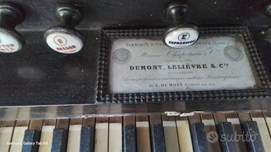 Harmonium del 1874 composto da 3 giochi e mezzo (ance Estève, le migliori, e sono in ottimo stato). Nell'alzata c'è il sistema Médiophone, sistema inventato da Dumont stesso che permette di avere un volume di suono più accentuato, e nello stesso tempo dona al suono un timbro più rotondo. Le ginocchiere aprono le gelosie del forte nei bassi e soprani del sistema Médiophone. Lo strumento necessita di un rinfresco al mobile (in massellino di rovere) e un restauro nella meccanica. Lo strumento viene venduto a un appassionato che lo porti ad una seconda vita. Dato il peso e l'ingombro. lo strumento deve essere prelevato sul posto. Non spedisco.