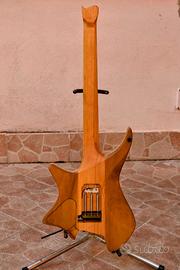 chitarra fatta a mano, copia esatta strandberg boden unica differenza ho fatto la tastiera con scalatura classica fender e non multiscala come l'originale, qualsiasi prova..... specifiche: neck through body frassino ali tulipier shape manico EndurNeck scalatura 25.5" tastiera palissandro 24 tasti inlay in ottone tasti jumbo acciaio ponte tremolo humbucker seymour duncan duncan distorsion sh6 volume push n'pul split humb\single tono condensatore MUSTARD 47