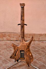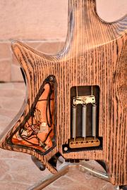 chitarra fatta a mano, qualsiasi prova..... specifiche: neck through body frassino ali rovere shape manico C scalatura 25.5" tastiera ebano 24 tasti inlay in alluminio tasti jumbo acciaio ponte tremolo humbucker ponte seymour duncan duncan distorsion sh6 humbucker manico PRS se switch 3 posizioni volume push n'pul split humb\single tono condensatore 47