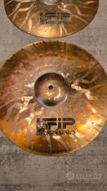 Hi hat Ufip in bronzo B8. Il top è un po' segnato dall'utilizzo ma non presenta alcuna crepa o ammaccatura. I pesi sono scritti nelle foto