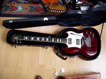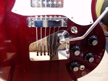 il precedente proprietario ha cambiato potenziometri (le manopole sono originali) , pick up (non so quale abbia montato , e ponte (ha messo un stile rickenbacker ) per avere corde molto basse