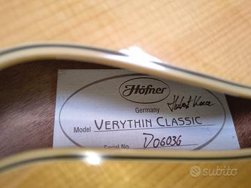 Hofner Verythin Classi. Chitarra Hofner prodotta da un solo liutaio, come da numero di serie in foto. Ottima per Jazz e blues. Presenta qualche segno di usura ma in ottimo stato.