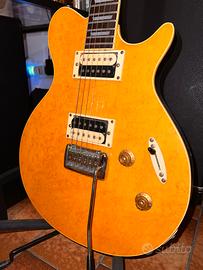 Chitarra elettrica vintage rara Hohner "The Blonde" HS-75, 1997, acero occhiolinato. Una chitarra davvero rara e introvabile, proveniente dalla linea premium di breve durata di Hohner. "The Blonde" è stata prodotta solo per 1-2 anni (1997–1998), rendendo gli esemplari sopravvissuti sempre più ricercati dai collezionisti. Prodotto in Corea, 1997-1998 Top in acero occhiolinato Corpo: Single cutaway, splendido top in acero occhiolinato, finitura bionda Manico: Manico incollato – mogano/acero Tastiera: palissandro, 22 tasti, intarsi trapezoidali Pickup: doppio humbucker con selettore a 3 posizioni Ponte: sistema tremolo con leva Ottime condizioni di seconda mano. Lievi segni di usura compatibili con uno strumento vintage ben conservato. Tutta l'elettronica funziona perfettamente. Tasti in ottimo stato. Nessuna crepa, nessuna riparazione.