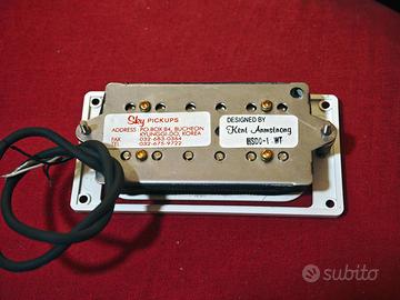 Pickup Humbucker Kent Armstrong Super Distorsion con codice HSDO-1 con magneti ceramici e resistenza misurata di circa 19kΩ per un output molto forte e definito. L'uscita è a 4 poli + calza per poter essere usato in coil split. E' un pickup a spaziatura standard (50mm) per posizione ponte su Gibson/Epiphone o chitarre con ponte Tune-o-matic fisso. Sconsigliato per il ponte di Stratocaster, Ibanez o chitarre con Floyd Rose (richiedono F-spaced). Può essere montato al manico, ma l'uscita del cavo risulterà invertita, accorciando inevitabilmente il cavo disponibile. La lunghezza del cavo è quella di fabbrica (non è stato accorciato) ed è di circa 25-26cm. La mascherina bianca non è quella originale, ma la fornisco ugualmente perché non saprei cosa farmene. Consiglio di montarlo con il pickup ring della vostra chitarra. Per qualsiasi informazione non esitate a contattarmi. P.S.: Attenzione, prima di acquistare vi invito a documentarvi bene consultando la scheda tecnica e le recensioni del prodotto; non acquistare qualcosa del quale non conoscete le caratteristiche!