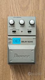 Vendo pedale Ibanez DE7 delay/echo della serie Tone-Lok, in ottime condizioni e completo di scatola originale completa. Il tempo di delay time spazia da 30ms a 2600ms suddiviso in 3 range che rende molto semplice settare il tempo correttamente. La vera chicca è la presenza di due diverse modalità: "delay" restituisce il classico suono delay digitale anni 80, mentre "echo" emula il suono caldo e lo-fi delle unità analogiche e a nastro. Perfetto per creare tappeti sonori ambient e droni. A differenza di altri pedali digitali, nella modalità echo è possibile mandare le ripetizioni in auto-oscillazione per suoni "spaceship". Come tutti i pedali della serie Tone-Lok è dotato di potenziometri push-pull (una volta impostato il suono basterà spingere i potenziometri per fissarli all'interno del pedale e memorizzare così le impostazioni). Consegna a mano a Torino o spedizione in tutta Italia. No permute. No offerte senza senso.