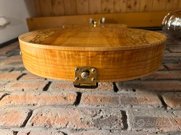 Vendo chitarra Ibanez, serie Artcore livrea Exotic Explorer. Humbucker dorati Super 58 Custom Tavola, fondo e fasce in acero "spalted" Profondità cassa 70 mm Manico set-in acero e noce Tastiera in palissandro a 22 tasti medium con intarsi in abalone e madreperla Ponte ART-1 con attaccacorde VT04 Custom Completamente originale completa di custodia rigida, corde appena sostituite, usata pochissimo pari al nuovo