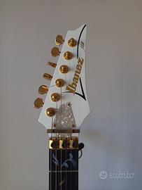 Vendo splendida chitarra Ibanez Jem 7V WH del 1999 Made in Japan - Steve Vai Signature. Condizioni estetiche perfette. Tasti al 90%. Inclusa custodia originale. PREZZO POCO TRATTABILE. NO SCAMBI. NO PERMUTE. NON SPEDISCO. CONSEGNA A MANO. SOLO VENDITA. Per qualsiasi informazione non esitate a contattarmi. CHITARRA ICONICA PER VERI APPASSIONATI. Body: Alder Neck Material: 1 Piece Maple Frets: 24 Fingerboard: Ebony Bridge: Lo Pro Edge Pickup: Evolution HSH
