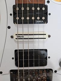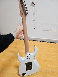 Ibanez Jem Jr bianca, con Pickup DiMarzio evolution al ponte, single coil DiMarzio Super distorsion S centrale e Tesla Vr- Nitro Black al manico, regalo i pick up originali. chitarra suonata 15 volte, sempre in casa, vendo per inutilizzo, uso altre chitarre più adatte per il genere che faccio. Veramente come uscita da negozio, sostitutiti anche i potenziometri con quelli che si vedono in foto, molto più belli di quelli in plastica originali, chitarra portata da liutaio appena presa.