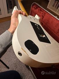 Vendo per passaggio a modello superiore questa splendida Ibanez RG 2550 MZ nella luminosa finitura Galaxy White. Si tratta di uno strumento della linea Prestige prodotto in Giappone dal team J. Craft, una garanzia assoluta per quanto riguarda la qualità dei materiali e la precisione del setup. La chitarra presenta un corpo in tiglio abbinato a un manico Wizard HP in cinque pezzi di acero e noce, estremamente veloce e stabile. La tastiera è in acero con i caratteristici segnatasti a dente di squalo. Il sistema di sintonizzazione è affidato al ponte Edge-Zero con sistema ZPS3, che permette di mantenere l'accordatura perfetta anche dopo un uso intensivo della leva. Per quanto riguarda il suono, la configurazione HSH monta i pick-up DiMarzio/IBZ originali con modifica split humbucker al manico tramite pull-push al tono, capaci di spaziare con grande versatilità dal rock più spinto a sonorità pulite e brillanti. La chitarra é usata in buone condizioni generali. Essendo stata utilizzata regolarmente presenta alcuni piccoli segni di utilizzo che ne testimoniano la storia, ma che non influiscono minimamente sulla suonabilità o sull'integrità del legno. La vendita comprende la custodia rigida originale Ibanez Prestige sagomata e la leva del vibrato. Non sono interessato a scambi o permute di alcun tipo.