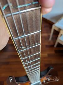 è in ottime condizioni, tranne per un danno sul bordo inferiore (vedi foto). tenuta con massima cura. perfetta di tastiera, intonazione e elettronica. Includo custodia rigida (non Ibanez)