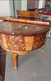 Ha il mobile intarsiato tipo sorrentino con radica di noce, pezzo unico.