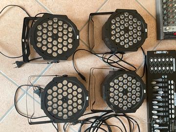 Vendo :Mixer luci 2 teste rotanti 4 luci 4 luci stroboscopiche Piooneer ddj 2 stativi per luci Un archetto (microfono) 1 microfono shure 1 sub 2 casse 1 mixer 3391821621
