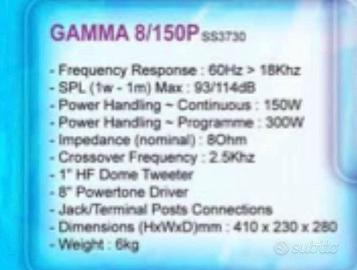 Casse acustiche ( senza rete frontale ) ma con staffe orientabili da muro Carlsbro gamma 8/150 passive
