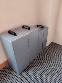 L'impianto è stato alleggerito separando gli amplificatori dalle casse, alleggerendole si circa 15 kg per i sub e 20 kg per le casse rendendole più trasportabili, ma si possono ricompattare riportandole allo stato originale. Gli amplificatori sono montati su valigette in legno con tutti i cablaggio necessari. Lo stato delle casse sono equivalenti al nuovo e suonano da paura. Non mi risultano alternative equivalenti alla qualità dell'impianto. Il suo grande e potente driver hf rende il suono chiaro e pulito anche a distanze notevoli. Vendo completo di tutti i cavi a 3200 euro . Non accetto permute. Lo vendo per problemi di schiena/età. Ottimo per installazioni fisse.