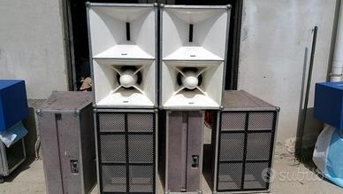 Vendo, per mancanza di spazio, questo impianto che non ha bisogno di presentazioni, i woofer da 18" sono stati messi nuovi con il doppio di potenza, perfettamente funzionante, di qualità potenza e pressione sonora impressionanti, vendo anche separatamente, volendo ho anche i loro finali e crossover sempre outline. Contattatemi solo se seriamente interessati no curiosi e scambio solo con soldi contanti grazie.