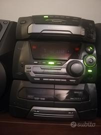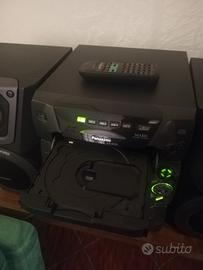 Bellissimo Impianto Stereo PANASONIC modello Sa-ak25. Perfettamente funzionante. Colore nero e grigio. Possibilità di ascoltare radio, cassette e CD. Si possono inserire contemporaneamente 5 CD e ascoltare quello desiderato tramite pulsanti. 2 sportelli per le musicassette, uno per l'ascolto, l'altro per la registrazione. Auto reverse. Equalizzatore. Display e pulsanti luminosi. E' possibile l'ascolto in cuffia. 2 potenti casse super woofer. Telecomando. Ottime condizioni dato lo scarso utilizzo.