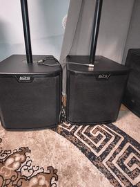Vendo impianto composto da casse attive hk sonar ix112, dsp, e connessione bluetooth comandabili a distanza tramite app, 1200 watt, coppia di subwoofer attivo modello alto ts 212s, 1250 watt, compatti leggeri e con bassi profondi, le aste sono escluse, prezzo intrattabile, per informazioni e prove contattatemi tranquillamente 3338015429