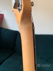 La chitarra tuttavia ha: ponte mastery (che da solo vale 270 euro circa), risistemazione del radius tastiera da 7,25 a 12. Profilo del manico da C a D. Il manico è scorrevole, bello e super suonabile. È stata tolta la vernice lucida per una satinata (sempre da liutaio). Inoltre: il wiring è stato rivisto, tolte cineserie e inserito uno switch per mettere i single coil in serie e in parallelo e utilizzare, se serve, un’uscita tipo humbucker. I pickup sono originali perché a me piacevano e adoro come suona questa chitarra, con vintage vibes ma bella grintosa. Vendo per esubero. È stata da poco rivista da liutaio (set-up e rettifica tasti, e anche qui chi sa… e ha idea della spesa …capisce che il prezzo è una super offerta. Se realmente interessati, per onestà, vi dico anche nomi dei liutai che hanno fatto i lavori.