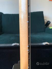 La chitarra ha un problemino, da qui il prezzo più basso rispetto a quanto vale come viene venduta: una spaccatura superficiale sulla paletta risolta da liutiaio e ricontrollata nel 2026. È stata trattata con colla alchidica e il danno è solo estetico.