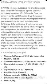 vendo per poco utilizzo queste casse della jbl le prx 710.. sono casse con un suono molto caldo ma per ambienti piccoli oppure monitor io le uso con pianoforte e voce. vendo con metodo viste e piaciute. se volete provarle e ritirarle vi tocca venire a casa mia