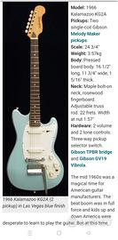 UNICA IN TUTTA ITALIA Kalamazoo 🇺🇸 KG2A 1966 strumento di interesse storico - chitarra elettrica 100% statunitense assemblata nel vecchio stabilimento Gibson di Kalamazoo Michigan USA, composta di un body in masonite prodotto nel Wisconsin USA e di un manico Gibson con pickup originali Gibson gli stessi pickup montati sulla Gibson Melody Maker. Chitarra che produce suoni molto vintage molto anni 60 in particolare si distingue suonata distorta con un suono molto tagliente molto aggressivo che si distingue. Strumento originale tranne I seguenti punti 1 aggiunto abbassacorde 2 ponte usurato sostituito con un ponte nuovo identico al ponte originale 3 manca il tremolo originale, presente la base originale del tremolo, si può montare un tremolo nuovo compatibile. si presenta molto bene verniciatura originale quasi intatta. Strumento da revisione per action e schermatura. un modo per distinguersi .3288377888