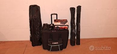 Vendesi per inutilizzo Karaoke Oky Web 3 completo di scheda mp3 con svariate basi musicali e di impianto audio Yamaha con mixer anche per amplificazione strumenti musicali, microfoni e staffe. Il tutto accessoriato con trolley a rotelle e sacche. Prezzo trattabile.