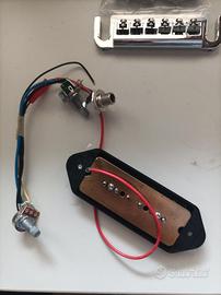 parti non originali mai montate per abbandono progetto di Gibson SG Junior. In vendita 1 mascherina, 1 pickup simile al P90, 1 ponte, 6 piroli senza le vitine.