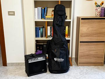 È il set ideale per chi vuole iniziare a suonare con strumentazione di qualità superiore ai soliti "starter pack" economici, o per chi cerca un muletto affidabile e già pronto all'uso. Le corde sono state cambiate e usate solo una settimana (40 euro). Il basso è stato controllato e settato da un liutaio. Action comoda e manico dritto.