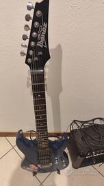 ciao a tutti vendo purtroppo per inutilizzo la mia prima chitarra elettrica che comprende nel kit Chitarra elettrica Ibanez GRX70QA-TBB, colore Transparent Blue Burst, con configurazione pickup HSH (Humbucker-Single Coil-Humbucker). Corpo in pioppo con top in acero quilted e tastiera in jatoba. Amplificatore: Marshall MG10G, un amplificatore combo da 10 Watt in carbonio cavo, plettri piedistallo inclusi