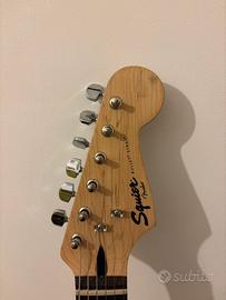 Chitarra elettrica Squier Stratocaster con corde nuove appena montate.